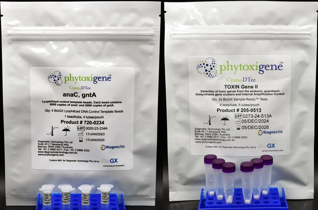 Phytoxigene™ CyanoNAS are Nucleic Acid Standards for the CyanoDTec kit. The standards are accurate and standardised concentrations of the target genes used in the CyanoDTec test. The standards were commissioned and developed by the National Measurement Institute (NMI), a Division of the Australian Department of Industry and a particpant in the International Bureau of Weights and Measures (BIPM) Consultative Committee for Amount of Substance (CCQM). There are 5 standards in each kit 100, 1,000, 10,000 and 1,000,000 copies per reaction for the 16s ribosomal RNA gene of Cyanobacteria, and for each biotoxin gene target that is responsible for the production of microcystin and nodularin (mcyE/ndaF) , cylindrospermopsin (cyrA) and saxitoxin (sxtA). The reference material has been designed to verify and/or validate methodologies for detecting toxin producing cyanobacteria using DNA-based technology.